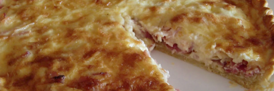 Sobre la base de la tarta se pone algo más de la mitad del bacon y el queso y a continuación la mezcla de huevo y nata, se reparte el resto del bacon por arriba y se hornea a 180º durante una media hora o hasta que esté cuajado y dorado. Se sirve caliente. (vía Recetas de Mamá)