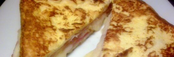 Calienta una sartén a fuego medio alto. Batir los huevos y la leche en un recipiente poco profundo. Cubrir el sándwich por ambos lados con la mezcla de huevo y colocar en la sartén. Cubrir con una tapa. Cocinar el sandwich hasta que esté dorado por ambos lados. Servir con sirope de arce caliente. (vía Pequerecetas)