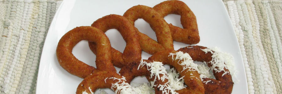 Formar churritos de unos 20 cms. de largo, y como de 1,5 cms. de grueso. Unirlos en sus puntas para formar unas roscas. Freírlas en suficiente aceite caliente hasta que doren.