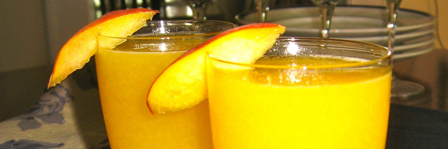 Colocar el jugo de melocotón en una copa de Champagne, poco a poco agregar el champagne, decorar con rodajas de durazno y servir. (vía El Gran Catador)