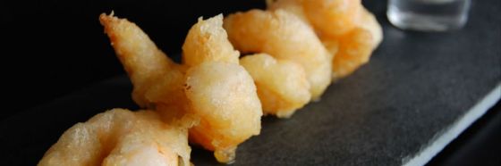 Calentar abundante aceite en una sartén. Pasar las gambas por la pasta que hemos hecho y freírlas, hasta que se vean doradas (el aceite debe estar muy caliente pero sin que llegue a humear). Sacarlas con una espumadera y dejarlas escurrir sobre papel absorbente. Servirlas bien calientes.  (vía Cocinavino)