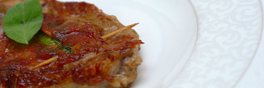 Paso 3: Colocar sobre el jamón, ya superpuesto al filete, una hoja de salvia y enrollar.