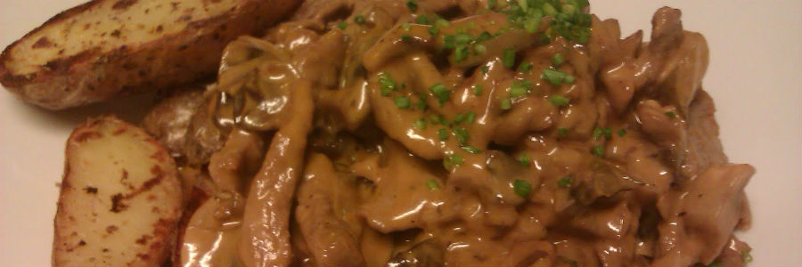 Ahora si, incorportamos los cubos de carne junto con el jugo que soltaron al dorarlos en la sartén y los champignons cortados (previamente también saltados en manteca).