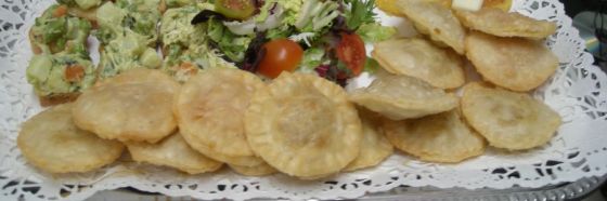 Humedecer el borde del círculo, colocar el relleno, tapar con otro círculo y hacer presión en el borde para que no se abra durante la fritura. En este punto puede acentuar la forma con un cortador especial para pastelitos.