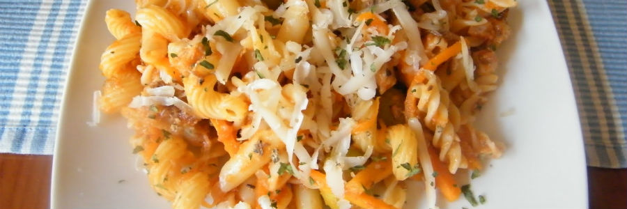 Añadimos la pasta y mezclamos. Servimos caliente y añadimos un poquito de tomillo fresco por encima. (vía Directo al paladar)