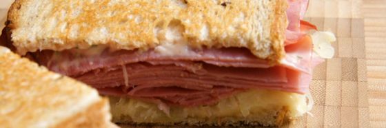 Reparte la carne en una rebanada sin que sobresalga nada y ponle encima una capa de chucrut de manera uniforme. Sobre estos ingredientes, pon una buena cantidad de queso rallado. Cierra los sándwiches con la parte de la rebanada untada de margarina hacia arriba y presiona bien para compactar las distintas capas.