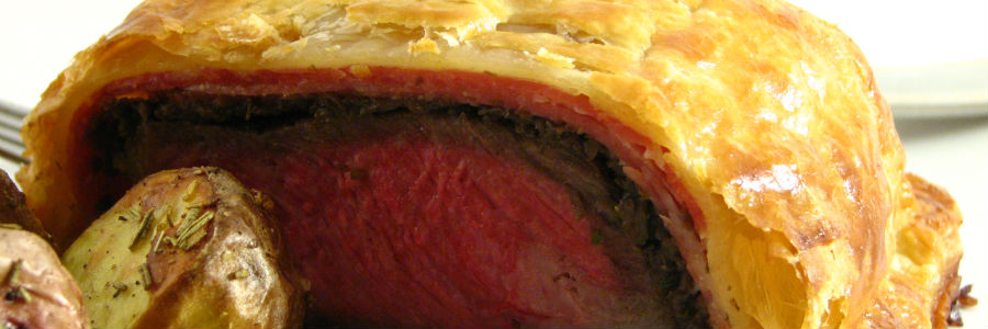 En una superficie enharinada estirar la masa de hojaldre, colocar en el centro el jamon y arriba la mitad de la cantidad de salsa de hongos, sobre todo eso colocar el lomito. Cubrir con la masa dándole forma de cilindro, pintar la masa con huevo y hornear 20 minutos en horno precalentado. Luego bajar la temperatura del horno y seguir horneando hasta que el hojaldre este dorado parejo.