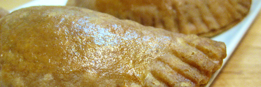 Paso seguido, poner el relleno sobre la masa y doblar en forma de una empanada y pincelar con yema de huevo para luego ser llevado al horno, dejar enfriar y servir. (vía Cocina rica)