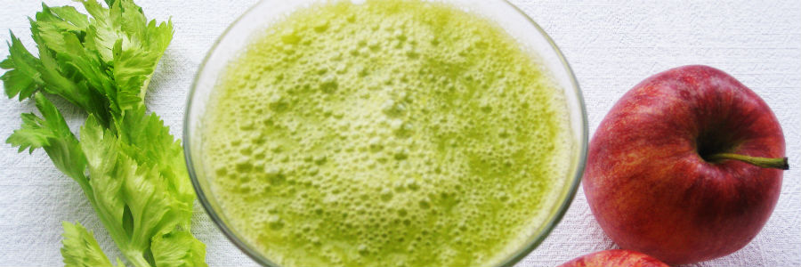Licua las manzanas y los tallos de apio en la licuadora, vierte la mezcla en la batidora y bátelo todo junto con la miel.