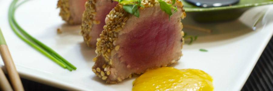 Saltear echalote, mango y pimientos. Agregar el azúcar, revolver y licuar. Colar y regresar al fuego, agregar sal y pimienta. Agregar sal ahumada y ajonjolí al atún y dejar reposar antes de sellar a la plancha. Servir un espejo de salsa con el atún sellado. (vía El Siglo de Torreón)