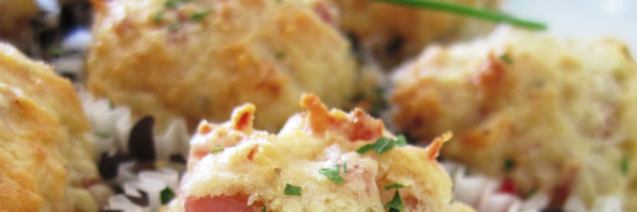 Tamizar la harina, polvo para hornear, sal y pimienta todo junto en un bowl. Añadir el queso en hebras y la panceta.