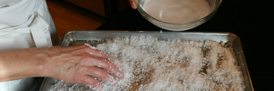 No. 1 Menú. Con el coco, un producto versátil y muy apreciado en esta cocina como elemento conector, se ofrecerán a escoger dos entradas, Arroz de Maíz que es una especie de polenta con maíz, carne, sofrito y coco y los tallarines en coco que son una sopa sumamente gustosa en base a carne asada y coco; los principales serán Revuelto de Gallina, un gran clásico del recetario zuliano, y Macarronada a la Manera de Arita, ese plato tan conocido que retrata la navidad en el Zulia. De postre quesillo de coco con una receta de Potreritos de 1884. Como opciones fuera de menú destaca el Chivo en coco.