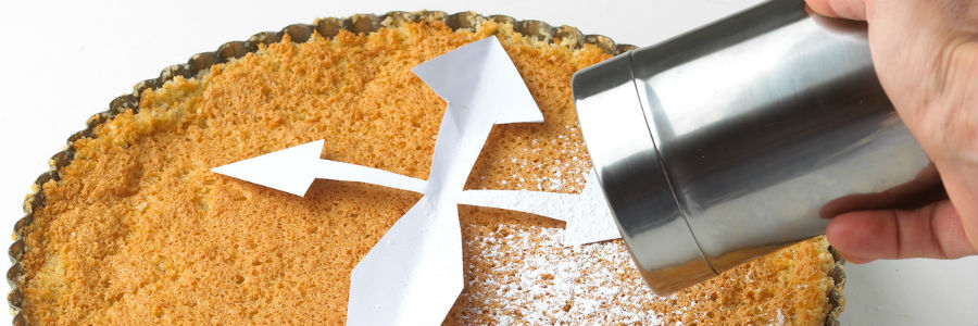 Se desmolda y una vez frío se espolvorea con un poco de canela Sobre la canela se pone una plantilla de la cruz de Santiago y se acaba de cubrir, espolvoreando, con azúcar glas. (vía Gastronomía Navarra)