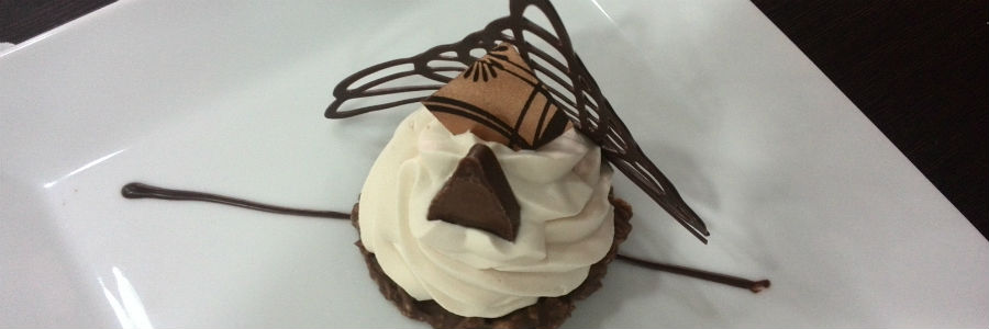 La ocasión fue propicia para que Bessone dispusiera sus destrezas en la cocina de la Escuela de Chocolate y Confitería de KKO Real y presentara a la prensa un almuerzo que ratificó su gusto por los granos del cacao en un menú conformado por tres platos: Entrada: Insalata de mézclum de lechugas aderezadas con vinagreta de aceite de oliva y limón con un espiral de chocolate oscuro sobre una lonja de carne cruda, junto a un queso fresco con nibs de cacao y salsa de perejil. Principal: Medallón de lomito con nibs de cacao, manteca de cacao rallada para la cocción en asador, reducción de licor de cacao y vegetales horneados igualmente en manteca. Postre: Crocante de arroz inflado, con crema de nocciola (avellana) y giaduiotto para decorar junto a una corona de chocolate.