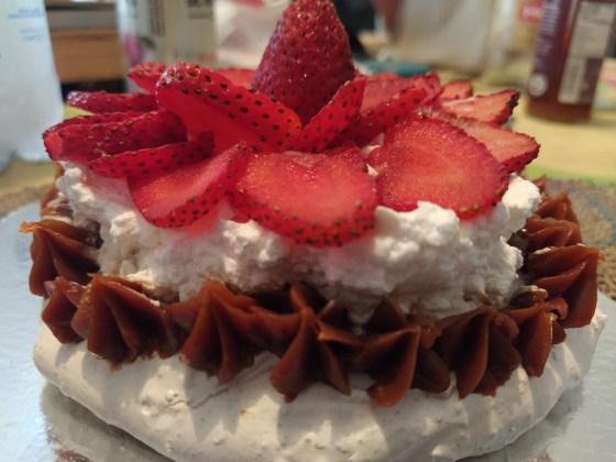 Pavlova. Es la reina absoluta. Casi me atrevería a decir que ha dado un respiro a los productores de fresas porque todos los días veo algún emprendimiento nuevo que hace pavlovas y necesitan más de esas fresas inmensas y apetitosas. Ya estamos en el nivel siguiente con pavlovas con otras frutas y con formas de letras pero es increíble la fascinación. No tengo problema con este postre pero a veces me incomoda que el suspiro es difícil de porcionar.