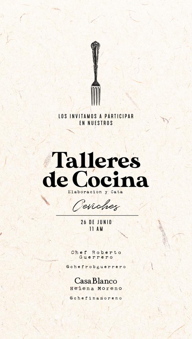 La líder de Casa Blanco comedor continúa con su exitoso programa de Talleres de cocina y en esta ocasión el sábado 26 de junio ofrece esta experiencia de aprendizaje y cata de ceviches