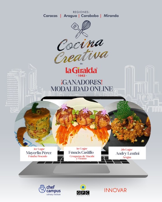 🍴 Antecedentes del concurso. Esta fue la edición de cierre del Concurso de Cocina Creativa y fue dedicada a platos típicos de Caracas y los estados Aragua, Carabobo y Miranda. En sus ediciones anteriores La Giralda y sus aliados propiciaron un suculento recorrido por las tierras venezolanas, en el que cada región abrió sus puertas para mostrar un abanico lleno de historia, desde sus hermosos paisajes, la bondad de su gente y hasta su variadísima despensa. Con cada receta se confirmaba que Venezuela es un país pleno, de cuantiosas tradiciones culturales, las cuales reflejan el perfil cultural de las diferentes regiones que conforman nuestro multicultural territorio nacional.